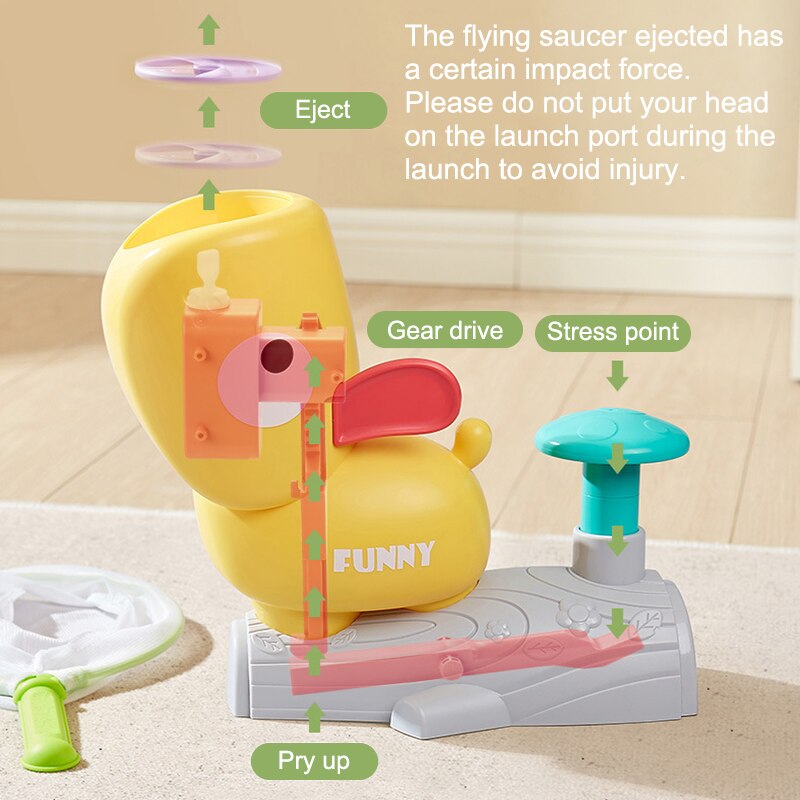 - Fun flying disc launch toy, cute shape, easy and quick assembly. Exercise the body hand and foot coordination, reaction and concentration. A perfect gift for your child’s birthday, Easter, Children’s Day, Christmas, Halloween, Valentine’s Day, Thanksgiving and New Year.