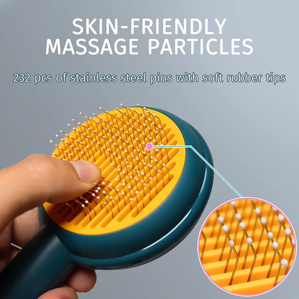 - Professional design: 140 ° curved bristles, so that this cat dog brush can better grasp the hair. The hair that is combed will only stay on the comb, not flying all over the sky. The cat dog brush has 232 massage beads, which are gentle and not hurt the skin. When use the brush is like doing SPA, could promot the blood circulation of pets.